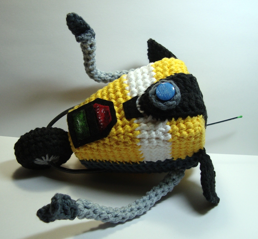 Borderlands 2 has been seriously cutting into my crochet time since it’s release. I’ve got a Gunzerker and a Siren all the way through the story and have really enjoyed playing it with friends and exploring Pandora. My favorite character from the whole game is Claptrap, who I have planned to crochet ever since he called me minion.