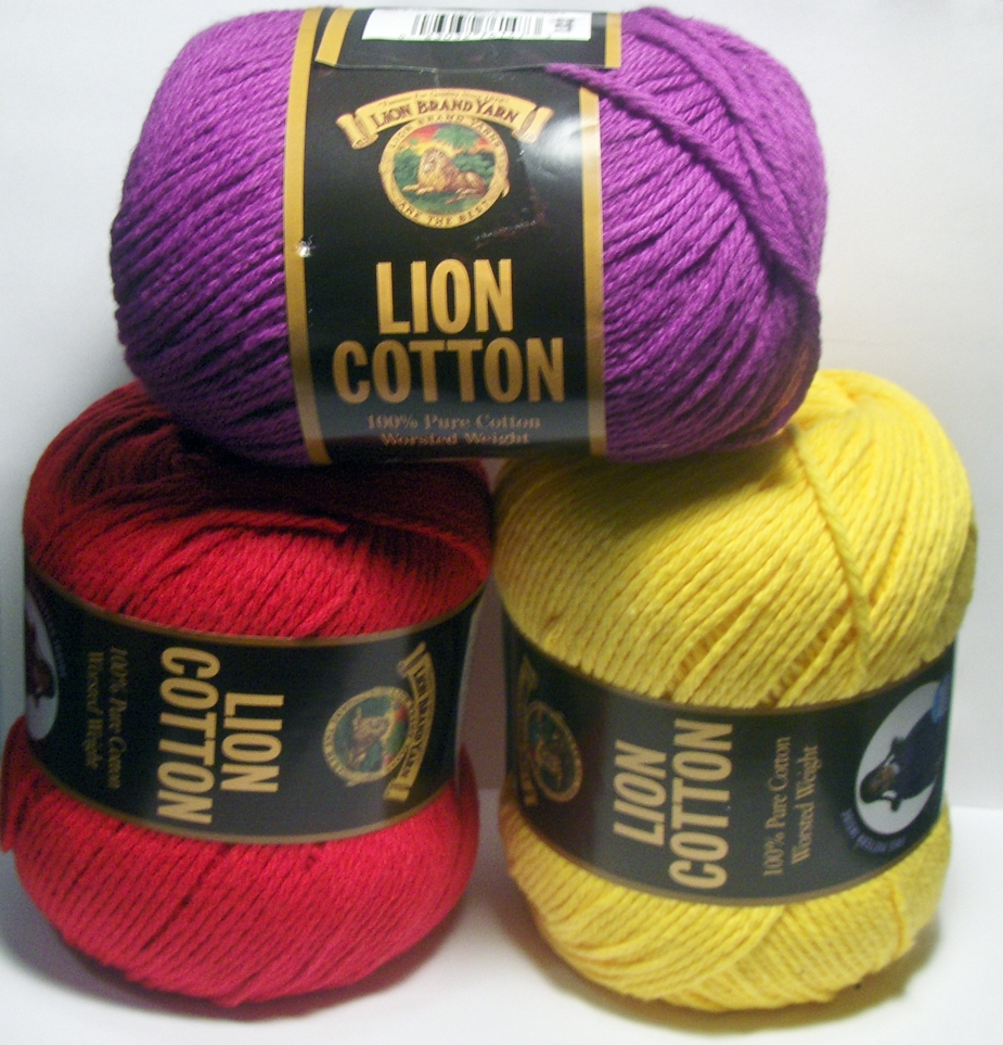 I bought my supply at stuff4knitting.com, where it is usually around $6 a ball but often goes on sale for $4. This is higher than BHC and LSC however the balls are significantly larger and the quality is top notch. As with most unmercerized worsted weight cotton yarns, a there are many colour options in ombres to please the dish cloth making crowd, but Lion doesn’t seem to feel the need to offer them at the cost of some decent staple solids like black, red and royal blue. The colour options were quite well represented on the website and were fairly accurate in comparing to the colours of the balls that were shipped to me.